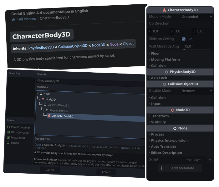 Given the comment in our code (top), we can see the tooltip in our code editor (middle right) and in the generated documentation page for player.gd (bottom left).