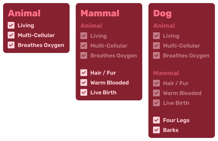 The classic example used to teach this concept involves animals, so let’s stick with tradition. Imagine we have an Animal class: this would be any living thing that is multi-cellular and breathes oxygen.